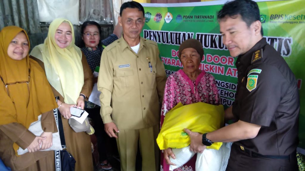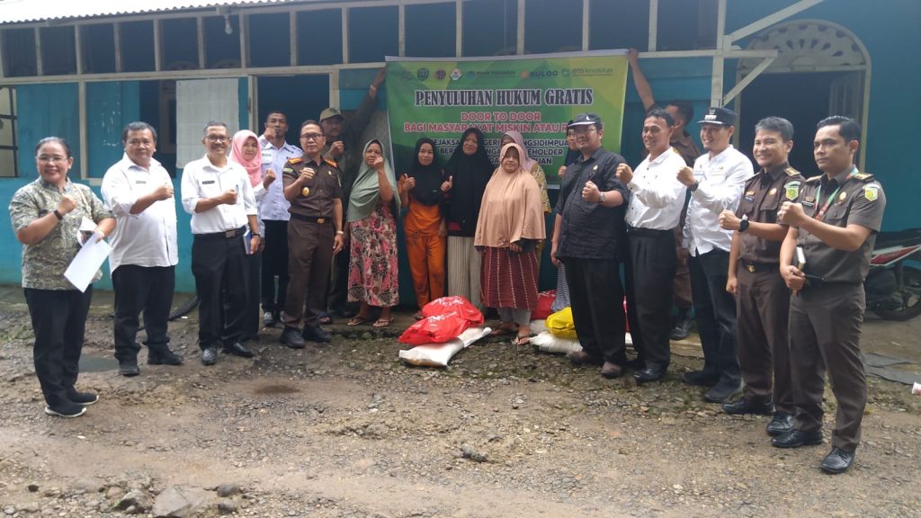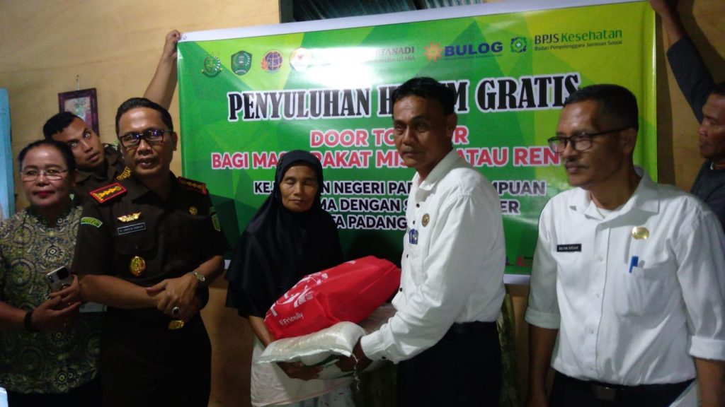 Kepala Dinas Sosial Kota Padangsidimpuan dan juga Kajari yang didampingi Kasi Intelijen Kejari yaitu Yunita Zega, S.H, M.H melaksanakan kegiatan Penyuluhan Hukum Gratis Door to Door ke warga rentan dan miskin di Kelurahan Wek IV di Kecamatan Padangsidimpuan Utara tanggal 12 Desember 2023. Adapun tujuan dari kegiatan ini adalah untuk memberikan pemahaman tentang hukum kepada masyarakat miskin dan rentan serta menampung keluhan atau permasalahan yang dihadapi oleh masyarakat untuk diberikan solusi. Selain memberikan Penyuluhan disini juga diberikan bantuaj berupa paket sembako berupa beras, telur, gula dan juga minyak goreng sebagai bentuk kepedulian terhadap masyarakat rentan dan miskin