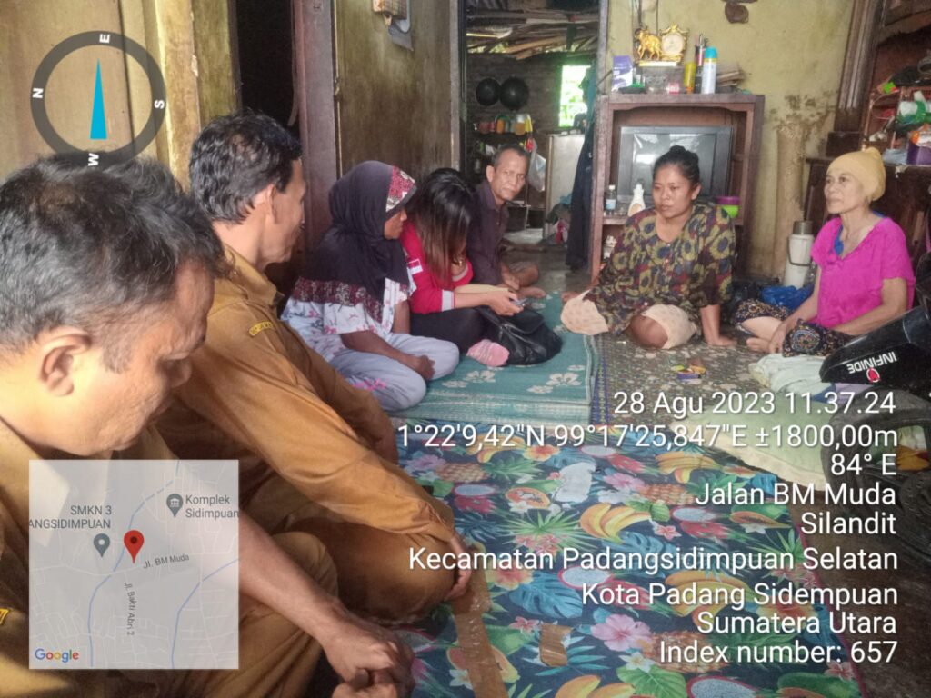 Pemberian Bantuan berupa Beras, Minyak, Gula Pasir, Alat Dapur, Matras dan Kain Sarung bagi Korban Kebakaran di Desa Labuhan Rasoki Dusun III Sidodadi an. Riadi dan Robbi Pangestu tanggal 5 Februari 2023 Kecamatan Padang Sidempuan TenggaraTim dari Dinas Sosial melaksanakan gotong royong membersihkan rumah warga yang terdampak banjir di desa manegenDinas Sosial mengikuti hari peduli sampah nasional bersama aksi mahasiswa peduli masyarakat indonesia (Ampas) tanggal 26 Februari 2023Koordinasi bersama Ibu Kepala Dinas Sosial Provinsi Sumatera Utara mengenai Bufer Stok Bantuan kebencanaan, Bank Data dan Alat Bantu Penyandang Disabilitas tanggal 23 s/d 25 Februari 2023Koordinasi bersama Kepala Bidang Perlindungan dan Jaminan Sosial Dinas Sosial Provinsi Sumatera Utara mengenai Bufer Stok Bantuan kebencanaan dan Masalah Kebencanaan Lainnya tanggal 23 s/d 25 Februari 2023Tim TAGANA dari Dinas mencek lokasi longsor di Wek VI tepatnya d Jln. Alboin hutabaratTim TAGANA dari Dinas mencek lokasi longsor di Perumahan RCM BatunaduaTim TAGANA dari Dinas mencek lokasi longsor di Wek VI Lingkungan 4 Kecamatan Padang Sidempuan SelatanPenyerahan Bantuan bagi Korban kebakaran di Kampung Darek, Senin 7 Agustus 2023Tim Tagana dari Dinas Sosial Kota Padangsidimpuan membantu membersihkan rumah warga yang terdampak banjir di Desa Manunggang Kecamatan Padangsidimpuan Tenggara 1 Agustus 2023Pemberian santunan gerakan seribu rupiah kepada Bapak Abdul Muluk Ritonga (49 th), suami dari ibu Lisma KPM PKH kelurahan Silandit yang tertimpa tanah dan mengalami patah tulang paha kiriPenyerahan santunan gerakan seribu rupiah kepada Ibu Nurhayani Siregar (50 th) KPM BPNT/Sembako kelurahan Silandit yang mengalami sakit kanker payudaraPenyerahan bantuan kebakaran Wek V Kecamatan Padangsidimpuan Selatan a.n. Sahat Manaek Hutabarat dan Sahat Marojakan SihombingPenyerahan Bantuan untuk korban bencana alam (angin kencang) a.n. Sudiria Kelurahan Sihitang Kecamatan Padangsidimpuan Tenggara