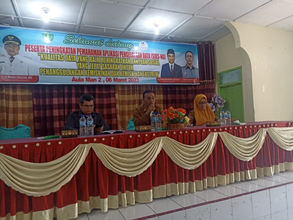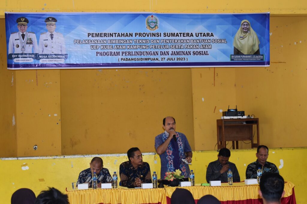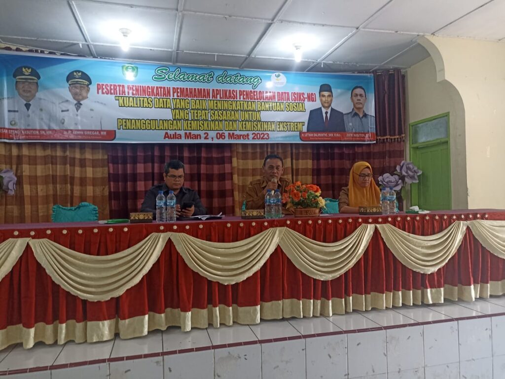 Acara Sosialisasi Aplikasi Salak Manis Berdahan sekaligus Launching pada Kegiatan Data Terintegritasi Dinas Sosial Kota Padang Sidempuan di YPKS tanggal Rabu,18 Januari 2023Sosialisasi Peningkatan pemahaman aplikasi pengelolaan data SIKS NG “kualitas data yang baik meningkatkan bantuan sosial yang tepat sasaran untuk penanggulangan kemiskinan dan kemiskinan ekstrim di Aula MAN 2 Padang Sidempuan tanggal 6 Maret 2023Sosialisasi Peningkatan kemampuan potensi tenaga kesejahteraan sosial kelembagaan masyarakat Kota Padang Sidempuan”Dengan Potensi Kelembagaan Masyarakat dan Jiwa Pengabdian yang tinggi kita tingkatkan kepedulian sosial” di Aula Man 2,10 mei 2023Kegiatan Sosialisasi Peningkatan Kemampuan dan Pemahaman tentang lembaga konsultasi kesejahteraan keluarga (LK3) ” Keluarga yang harmonis akan memperkuat fungsi sosial secara optimal” di Aula Man 2, 16 Mei 2023Kepala Dinas Sosial mengikuti Koordinasi Penanganan Fakir Miskin Dinas Sosial Provinsi Sumatera Utara tanggal 28 Mei s/d 1 Juni 2023 di MedanPelaksanaan bimbingan teknis dan penyerahan bantuan sosial UEP KUBE ayam petelur serta pakan ayam (Program perlindungan dan jaminan sosial) 27 Juli 2023Penyaluran bantuan pangan cadangan beras tahap 2 sebagai upaya dalam mengatasi tantangan ekonomi yang dihadapi oleh masyarakat,penyaluran ini terdapat di tiga titik lokasi yaitu gedung adam malik untuk kecamatan psp selatan,kantor camat batunadua dan kantor camat angkola julu tanggal 24 September 2023 Bpk Pj. Wali kota melalui PLH. SEKDA Bpk. Rahuddin Harahap melaunching Penyaluran bantuan Sosial Sembako/ kepada Kelurga Kurang mampu, terindikasi stunting diluar PKH/BPNT utk 1000 klrg. Dilaksanakan di Ktr Camat Padangsidimpuan Huta Imbaru di dampingi oleh Kepala bidang pemberdayaan dan penanganan fakir miskinDalam pengentasan kemiskinan dan kemiskinan ekstrem,perlu adanya Kolaborasi antar OPD di Kota Padangsidimpuan. Dari hasil kegiatan pelatihan kewirausahaan Dinas Sosial Kota Padangsidimpuan diharapkan memiliki penerima bantuan sosial yang serius dalam berusaha. Setelah mendapatkan bimbingan dan ilmu dari Disperidang Salah Satu KPM PKH dengan tidak sabar langsung menghadap Bapak Kepala Dinas Perindag untuk menerbitkan Nomor Induk Berusaha yang bersangkutan dan berharap menjadi salah satu binaan UMKM kota Padangsidimpuan dibawah bimbingan Kepala dinas perindag dan Kepala Bidang UMKM. Semoga ke depannya semakin banyak keluarga penerima bantuan sosial yang serius berusaha dan mampu meningkatkan taraf kesejahteraan sosial keluarganya.Dalam usaha pemenuhan kebutuhan hidup keluarga, ibu rumah tangga memiliki peranan yang sangat penting dalam mengatur keuangan rumah tangga. Selain pengaturan keuangan yang baik, untuk meningkatkan pendapatan ibu rumah tangga penerima bantuan sosial diharapkan tidak hanya berjiwa konsumtif, akan tetapi juga harus produktif.Dalam upaya menumbuhkan keinginan agar lebih produktif tersebut maka perlu diberi stimulasi dengan memberikan pengetahuan pengetahuan tentang kewirausahaan. Oleh sebab itu pada tanggal 01-02 Nopember Dinas Sosial Kota Padangsidimpuan melaksanakan Pelatihan/sosialiasi Kewirausahaan Bagi Penerima Bantuan Sosial yaitu KPM PKH di Aula KPN Budi Luhur. Kegiatan ini dibuka oleh Kepala Dinas Sosial Kota Padangsidimpuan Bapak Zufri Nasution, SPd, dalam kata sambutan beliau mengatakan bahwa pentingnya menumbuhkan jiwa wirausaha dalam pribadi kita, setelah ada keinginan wirausaha makan selanjutnya adalah ketrampilan apa dan minat apa yang harus kita kembangkan agar penerima bantuan ini menjadi pengusaha, sukses dan akhirnya keluar sebagai penerima bansos. Narasumber yang menyampaikan paparan adalah Bapak Kadis Perindag Kota Padangsidimpuan Bapak Ridoan Pasaribu yang menyampaikan bagaimana wirausaha yang baik, dan beberapa praktisi lainnya. Diharapkan dengan kegiatan ini akan muncul embrio embrio usaha pada keluarga penerima manfaat yang selanjutkan akan dikolaborasikan dan dibina antar OPD sebagai salah satu upaya pengentasan kemiskinan dan kemiskinan